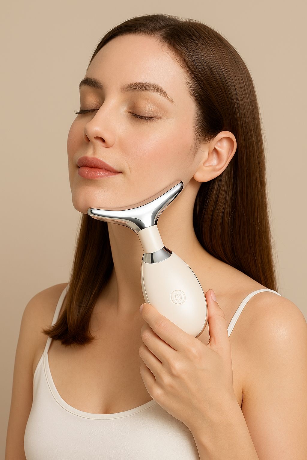 Der Ghicé LumiLift 7 ist ein hochmodernes Gesichtsmassagegerät, das professionelle Hautpflege direkt zu dir nach Hause bringt. Mit 7 verschiedenen LED-Farben, wohltuender Wärmefunktion und sanften Massage-Vibrationen unterstützt es deine Haut dabei, frischer, klarer und gestraffter auszusehen.